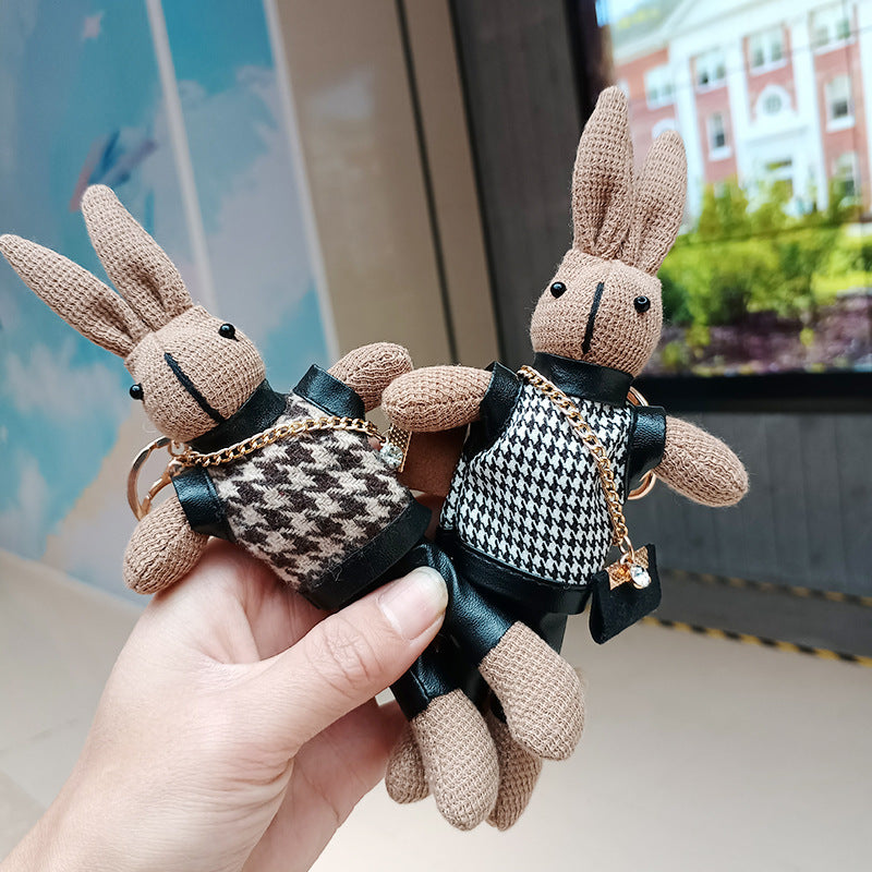 Houndstooth Rabbit Bag Cute Plush Pendant Creative Keychain